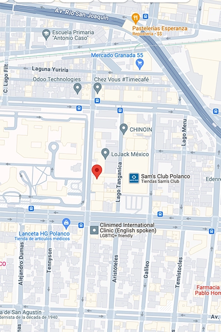 Sucursal Polanco Inicio / Sucursales / Sucursal Polanco Exclusivo Atención a Pacientes 55 4358 7145 Para reporte de incidentes en sucursal. Dudas, Sugerencias o Hacer una Cita 55 5531 3329 55 5531 3099 polanco@avanzarehab.com.mx Lago Victoria #80 Piso 1, Col. Granada, Miguel Hidalgo, 11520, CDMX.